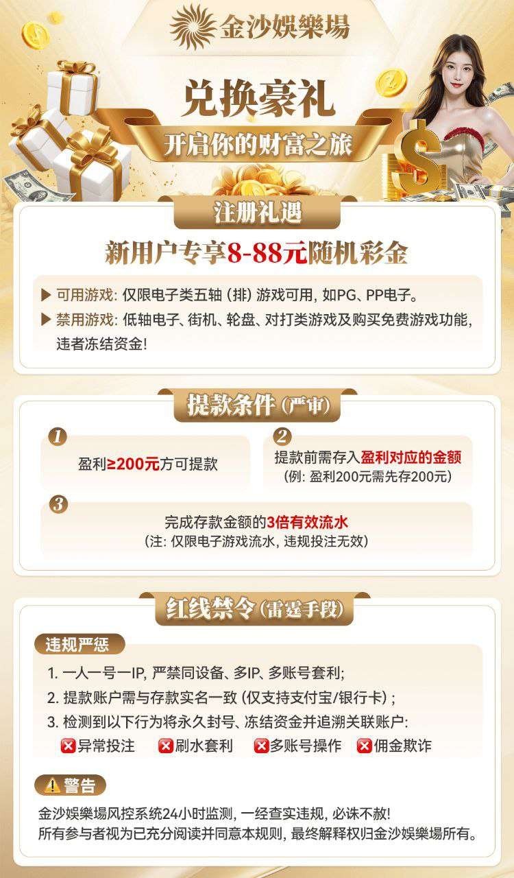 注册送8-888元,绑定手机号码,提款方式才可以领取。只能娱乐WG/PG电子,盈利后充值100提现。领取方式:绑定对应资料后,点击论坛左上方三条横杆,找到彩金商城选择相应的平台用论坛金币兑换平台券码,得到券码后在到游戏平台兑换。(金沙兑换入口在优惠--新人--特邀8-888元)